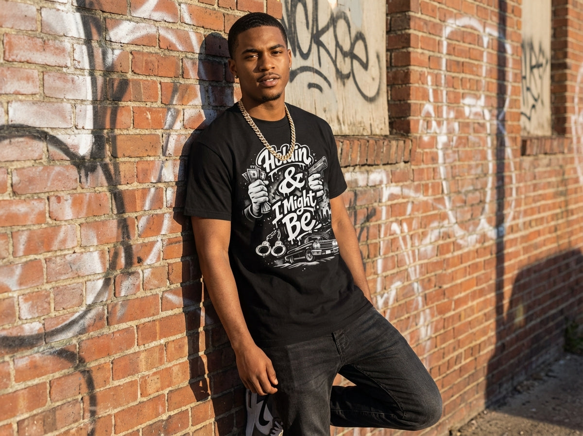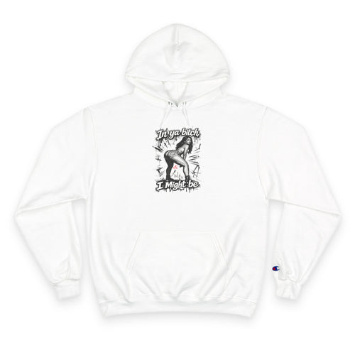 Champion Hoodie — "I Might Be" Graphic Hoodie with Retro Pin-Up Illustration